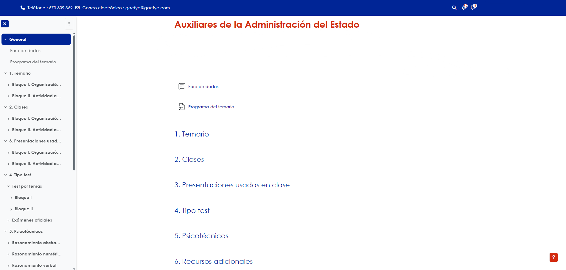 El curso de preparación de las oposiciones de Auxiliares de la Administración del Estado incluye: